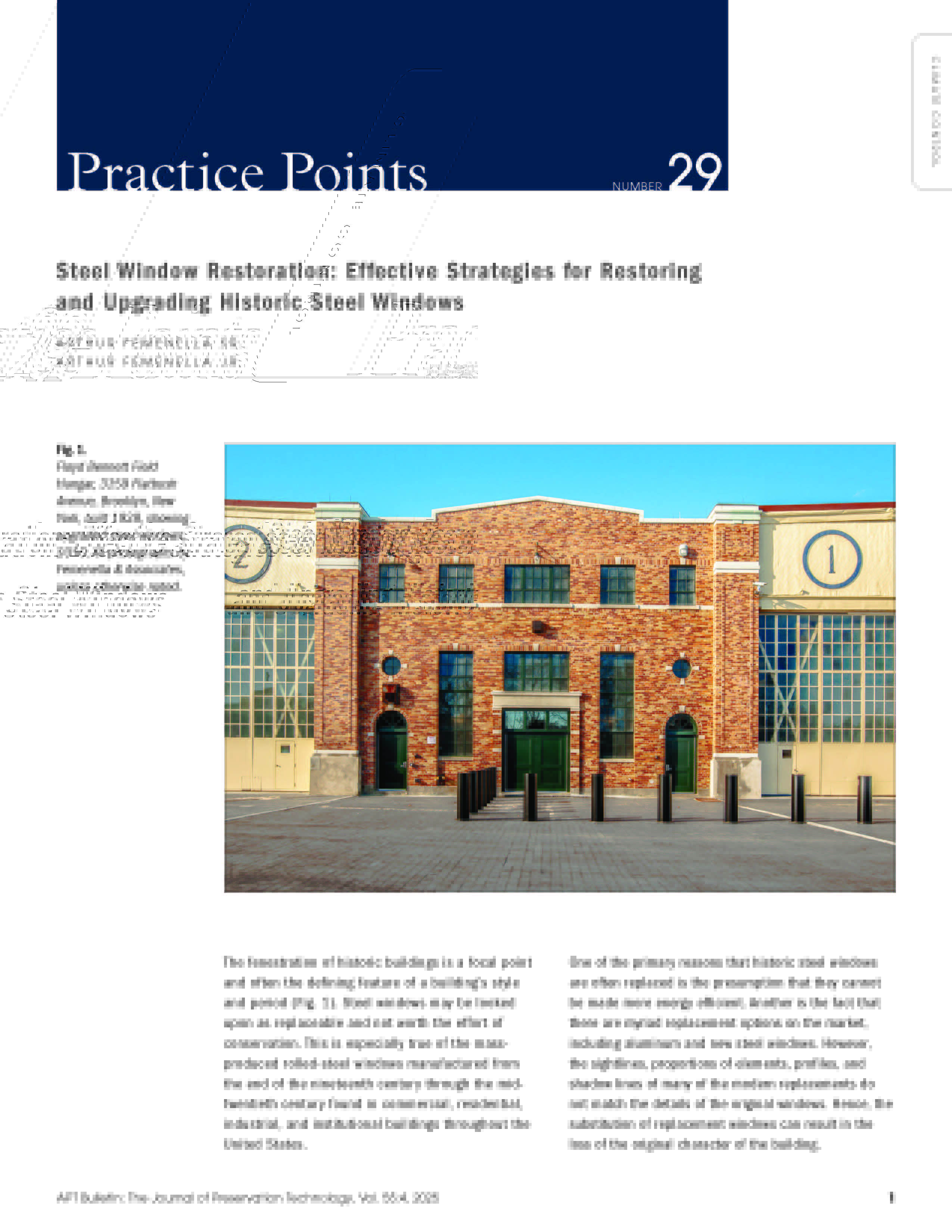 In 2006, APT introduced Practice Points in the APT Bulletin as a way to share best practices in the field. Each column illustrates an existing or cutting-edge technology or technique in practice, shares original research in the history of building technology and materials, or presents recent case studies in which new technologies and techniques have been used successfully. Practice Points is designed to provide the most up-to-date, nuts-and-bolts information for practitioners and their clients.